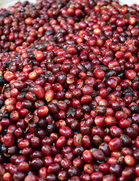 ゲイシャの樹から収穫したコーヒーチェリー(実)を
